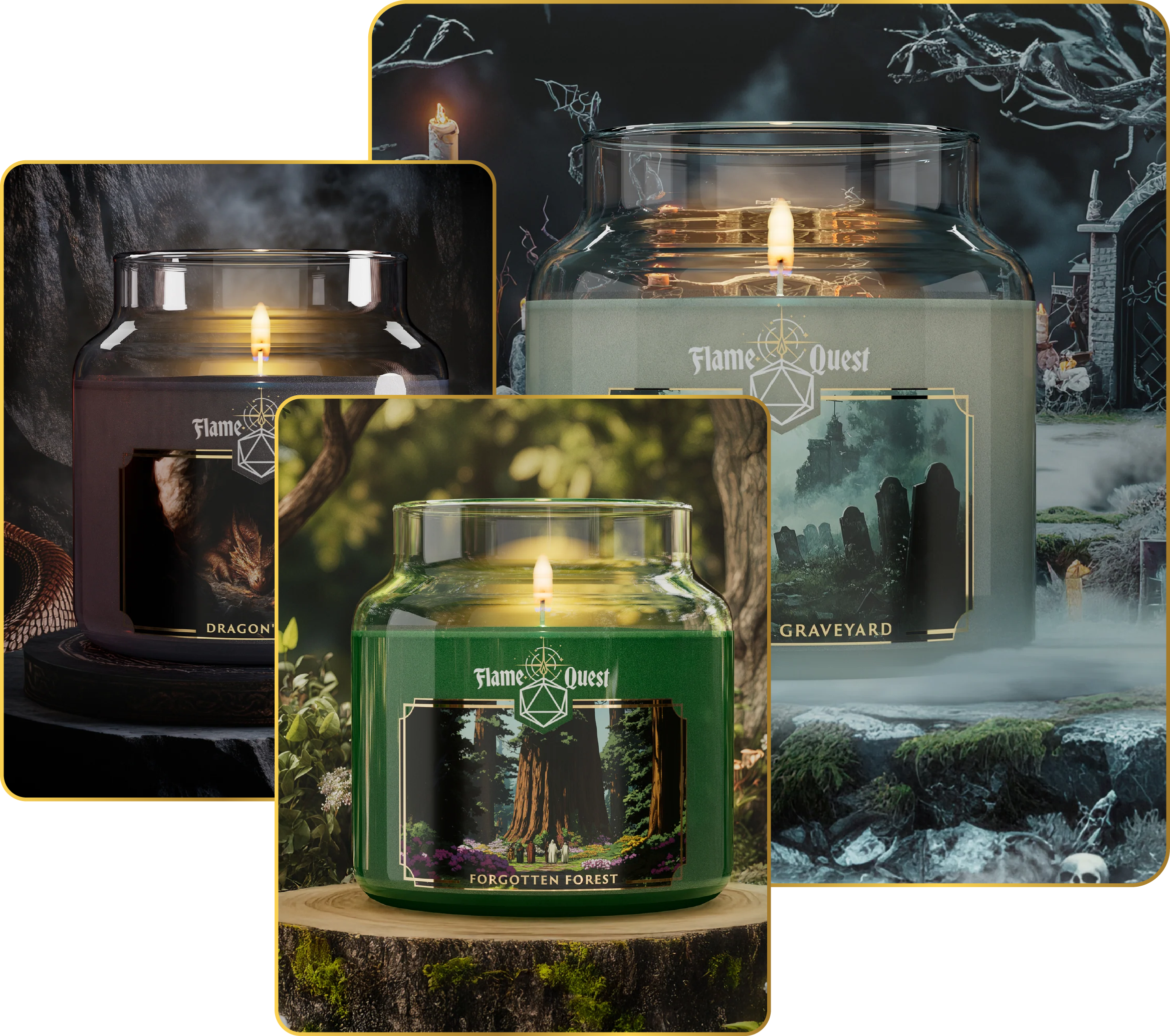 At Flame Quest, our hand crafted, adventure themed candles are designed to ignite your journey and elevate your space. Each candle is made with a high-quality wax blend, rich fragrances, and a passion for creating the perfect experience. Whether you're seeking treasure, inspiration, or a cozy ambiance, our candles bring light to every moment. Let the adventure begin—one quest at a time! 🔥✨